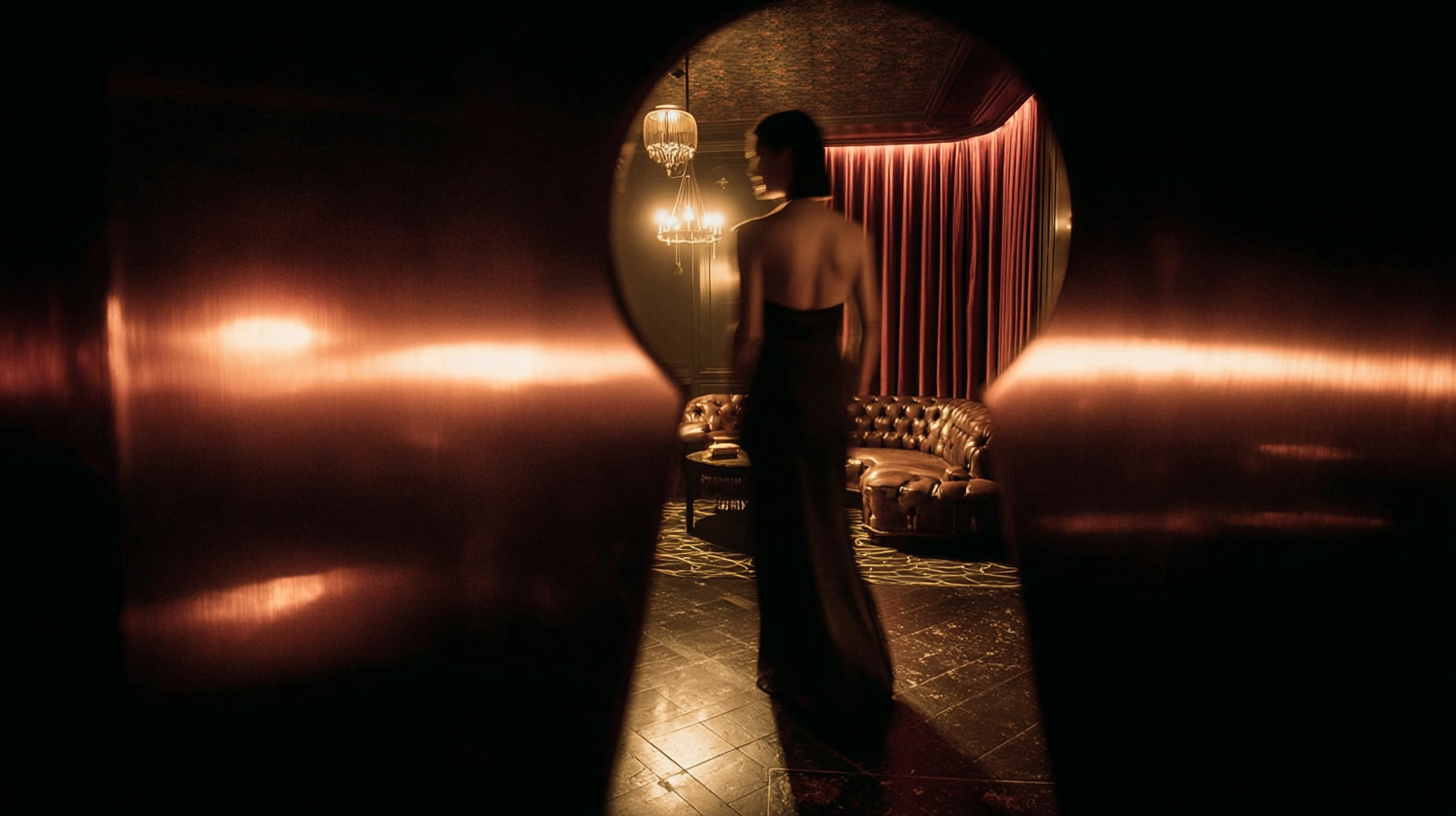The narrative follows a woman entering a secret, almost forbidden space, unfolding as a sensory journey of light, movement and atmosphere. Each frame was designed as a key moment in a short film, emphasising mystery, intimacy and ritual through controlled camera angles, deep red lighting, shadows and tactile textures.